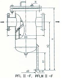 (4)籃式法蘭連接直通封頭式過濾器(PFL II—F型)  (PN≤5.OMPa DN200—500)